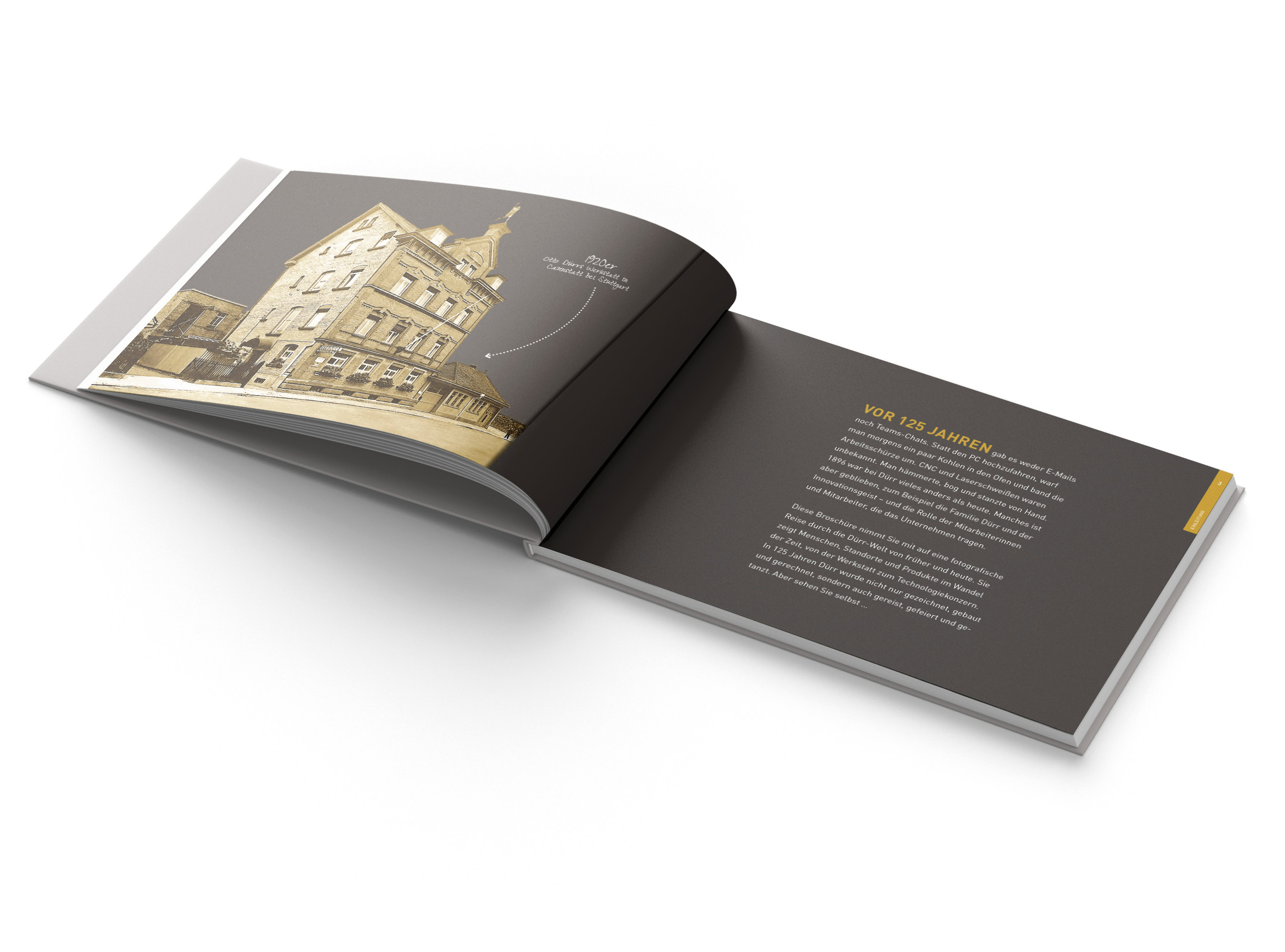 Konzeption, Gestaltung und Produktion der Broschüre und des Jubiläumslogos zum 125 jährigen Jubiläum von Dürr.